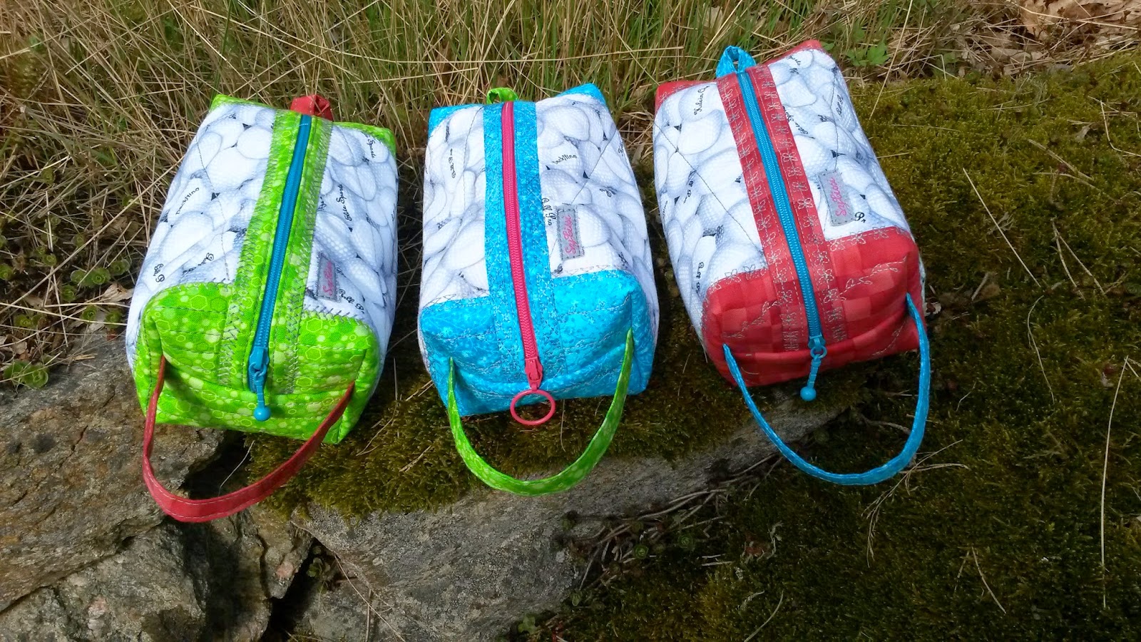Har sytt lite necessärer i veckan som gått. Tre stycken med golfbollar på som jag ska skänka till vinster till damernas vårträff på golfklubben. Tyget hittade jag på Mossby quiltshop